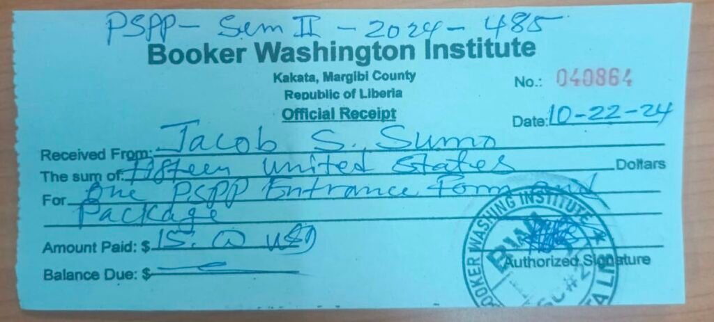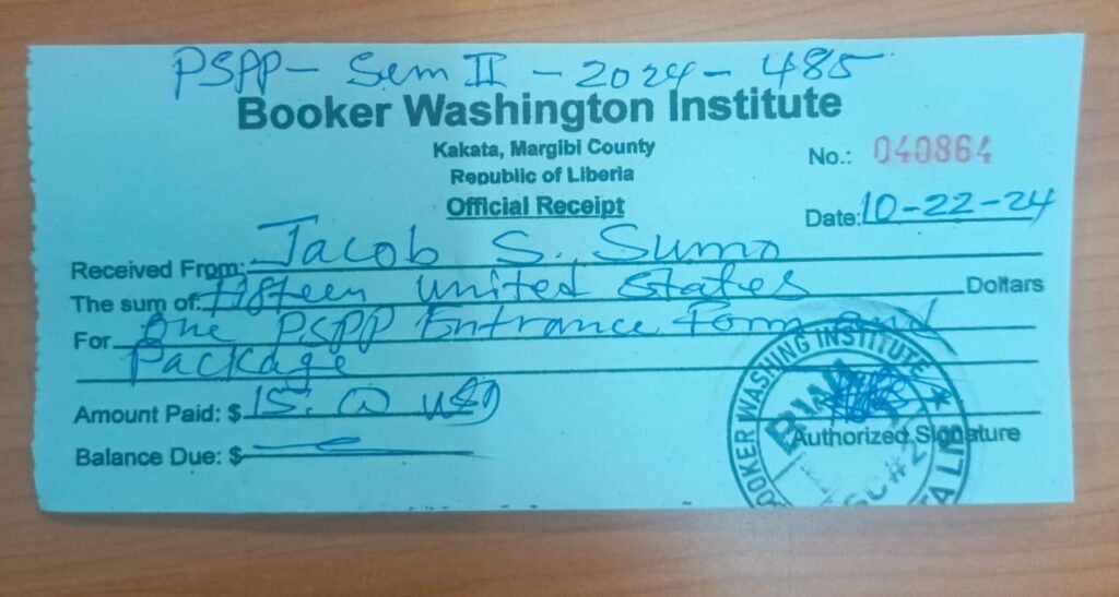 Impressed by his dedication and energy, Kollie and colleagues decided to support Jacob beyond campaign activities. In 2024, they enrolled him at the Booker T. Washington Institute (BWI) in Kakata to pursue a two-year Diploma and Associate Degree in Automotive and Auto Mechanics. All tuition, fees, and required materials—including safety boots, tools, and workshop equipment—were paid in advance by the Martin K. N. Kollie Foundation.